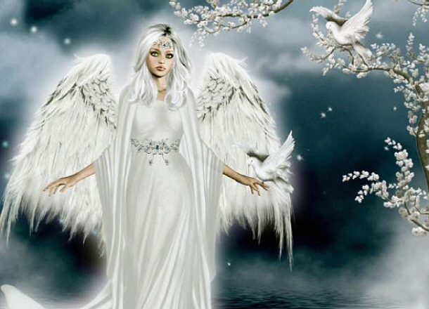 Рисунок содержит кодировку, направленную на ухожат (смерть). 2 птицы символизируют уход Души. Изображение контактантки негативного плана также связано с фиксацией внимания на кодировке ухожата: 2 руки, 2 крыла, на теменной чакре изображён чёрный крест (символ смерти). Белые одежды – вызвать желание принять кодировку.