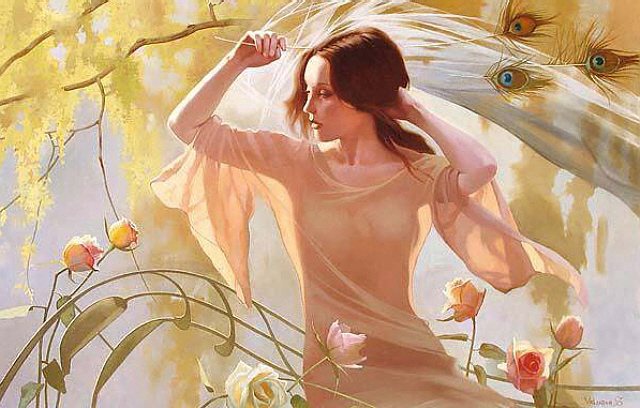 Рисунок- кодировка, направлен на Душу, на принятие зла негативных энергий. 3 цветка слева от контактантки символизируют зло негатива. 4 цветка справа символизируют Свет, но они наклонены в сторону негатива (пойти негативным путём). Контактантка негатива усиливает кодировку. Остальное тоже усиливает кодировку.