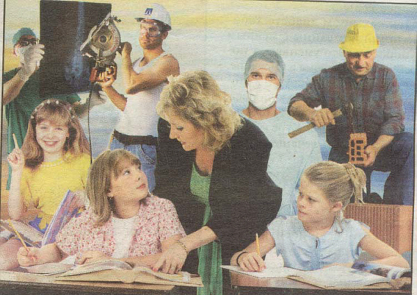 Рисунок содержит кодировку, направленную на Душу, вызвать заболевание любого плана. Изображены одежды чёрного цвета, рядом белого (медицинский халат, маска). Этот приём заключает кодировку. На переднем плане дети – для желания принять кодировку. Светлый фон также вызывает желание принять кодировку.