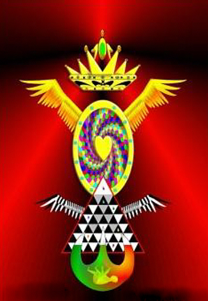 Рисунок содержит кодировку, направленную на Душу, на заполнение Души негативными энергиями Поля 6 Зет. Корона символизирует Поле 6 Зет (6 элементов). В центре изображена Душа, заполненная энергиями в виде спиралей. Красный цвет – негатив. Жёлтый и зелёный- для желания принять негативные энергии. Остальные элементы рисунка усиливают кодировку. Красный фон также усиливает кодировку.