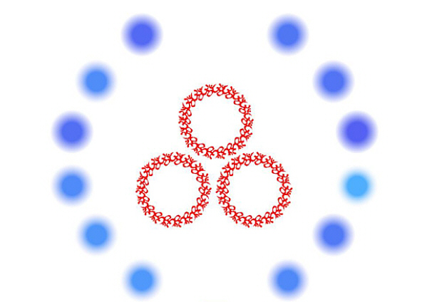 Рисунок-кодировка, направлен на Душу, вызвать в Душе зло, принять негативные энергии Поля 6 Зет. 3 красных кольца – зло, направленное в Душу. 12 кружков по кругу- кодировка на принятие негативных энергий Поля 6 Зет. Синий цвет- для желания принять кодировку.