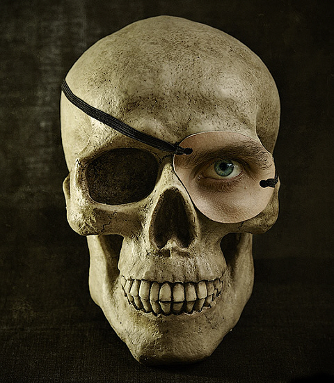 Рисунок-кодировка, направлен на Душу, на принятие негативных энергий и желание Души покинуть физическое тело. Череп символизирует смерть. Зубы (11 + 11) заключают кодировку, направленную на ухожат. Глаз- для концентрации внимания на негативе, на кодировке. Чёрная повязка усиливает кодировку, направленную на ухожат.