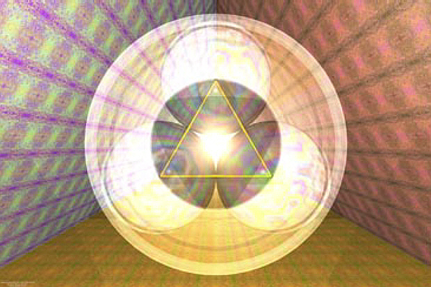 Рисунок-кодировка, направлен на ухожат (смерть). Душа (круг) движется по коридору к месту своего назначения. Слева и справа на стенках коридора по 14 полос (воздействие на Душу). Треугольник – движение жизни (Души) по коридору. На фоне большого круга изображены 3 малых круга для усиленного воздействия на Душу (тройное воздействие). Коричневый фон усиливает воздействие негатива.
