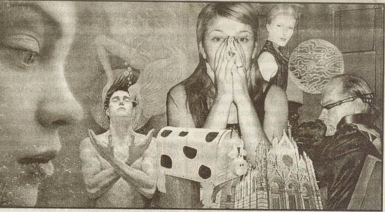 Рисунок- кодировка, направлен на Душу, на Дом Души, вызывает желание Души принять негативные энергии Поля 6 Зет и подключиться к Полю 6 Зет. 6 чёрных пятнышек символизируют негативные энергии. Незрячий человек касается головой негативных энергий, изображённых в круге (желание подключиться к негативу). В центре рисунка контактантка негатива усиливает кодировку. Усиливают кодировку и 6 человек на рисунке.