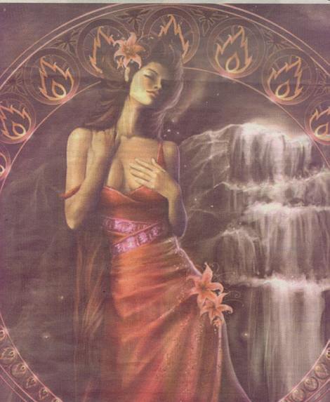 Рисунок направлен на Душу (круг). Вызывает боль Души. Контактантка негатива усиливает кодировку. Левая рука в области Души – для фиксация внимания на Душевной боли. Красный фон усиливает кодировку. Водопад – для желания принять кодировку.
