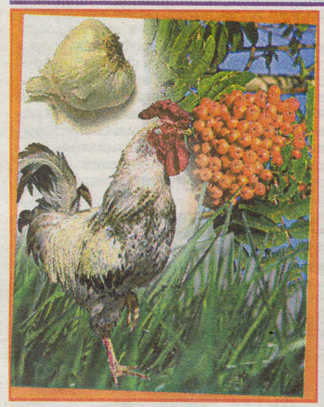Рисунок- кодировка, направлен на Душу, на принятие Душой негативных энергий. Петух (5 букв), птица символизирующая Душу. Красные ягоды – негатив. Душа принимает негатив. Чеснок (6 букв)- закрепление кодировки. Красная рамка – для концентрации внимания на кодировке. Зелёный цвет вызывает желание принять кодировку.