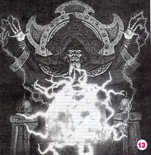 Рисунок- кодировка, направлен на Душу, способствует заполнению Души негативными энергиями. На рисунке чёрный маг, усиливающий кодировку. Цифра 13 подкрепляет кодировку, усиливает действие негатива. Эта цифра несёт информацию о зле.